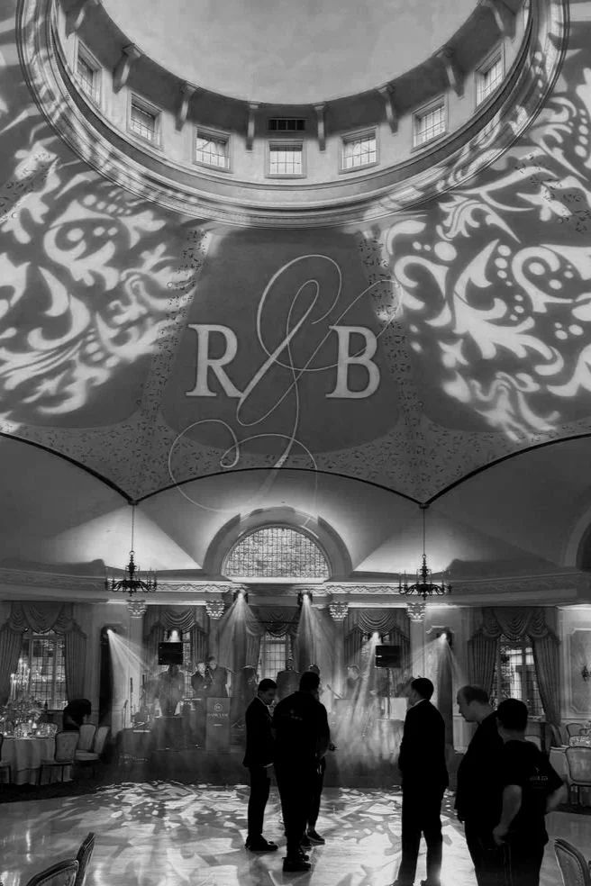 Gobo lighting is a creative and versatile lighting technique that uses stencils to project customized designs, patterns, and images onto surfaces. It's a powerful tool for adding a personalized and visually appealing element to events, enhancing ambiance, and creating memorable experiences. We love to add custom monograms to your dance floor, or on a statement wall to add interest and personalization.